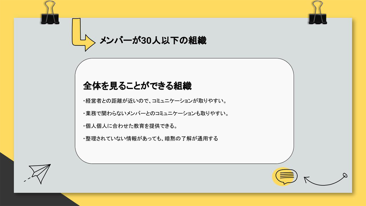 いまは25名ほどの会社ですが、2-3年後には50人規模の会社を目指しています。 そうなっていくと、立ちはだかるのが組織の壁。